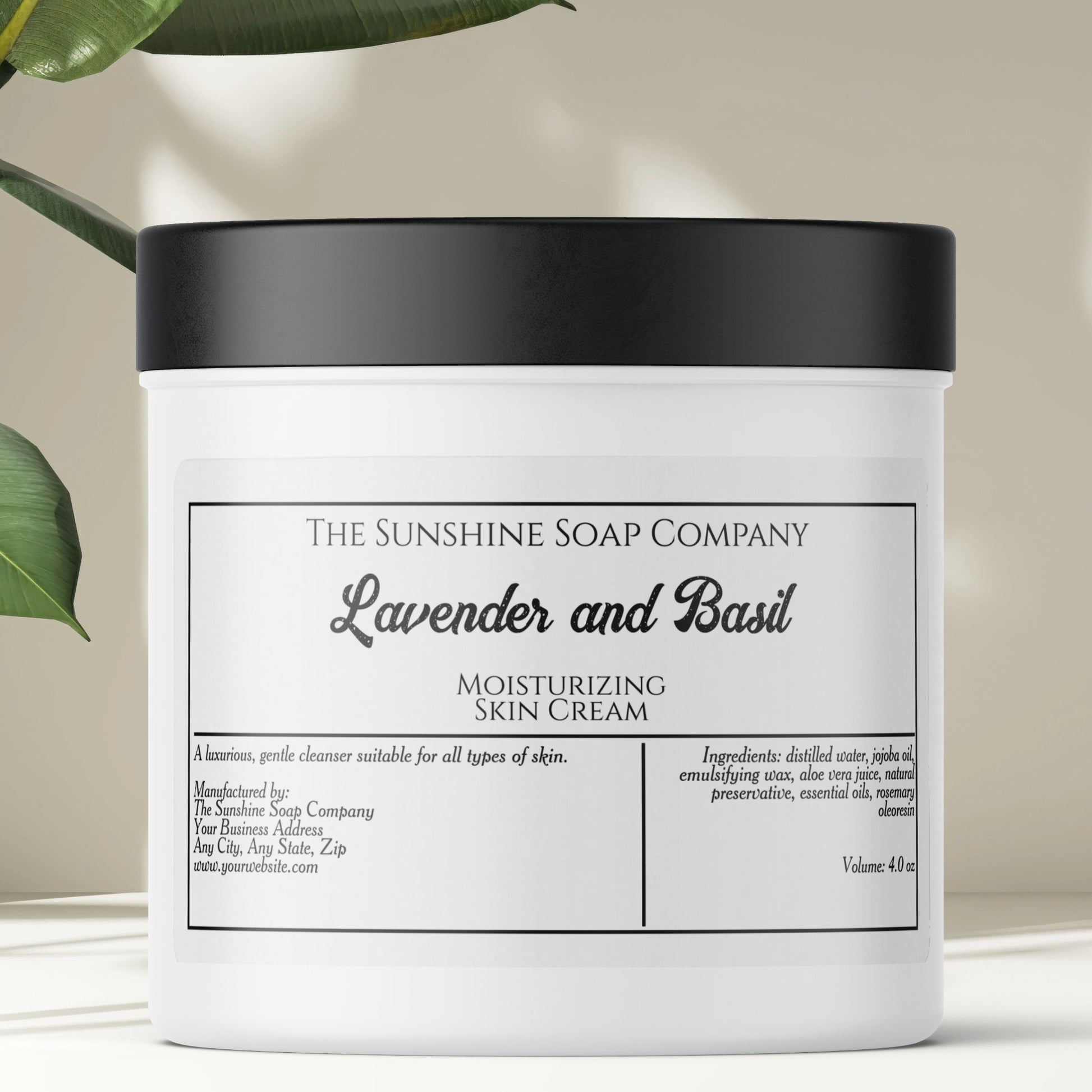 White with black text soap or cosmetics jar label